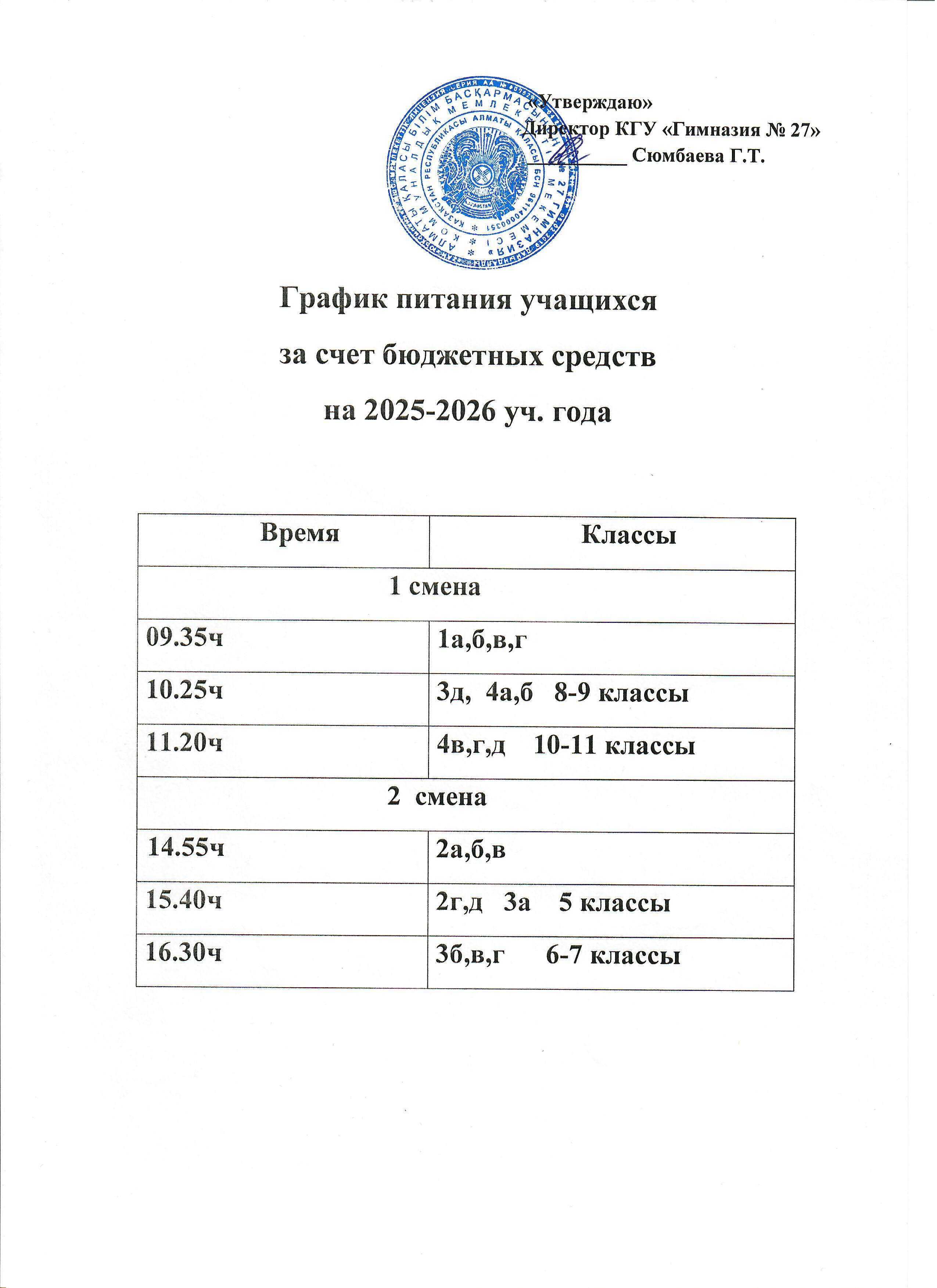 03 сентябрь 2025 0 1 2 3 4 5 График питания учащихся за счёт бюджетных средств и график дежурства учителей в столовой на 2025-2026 уч. г.