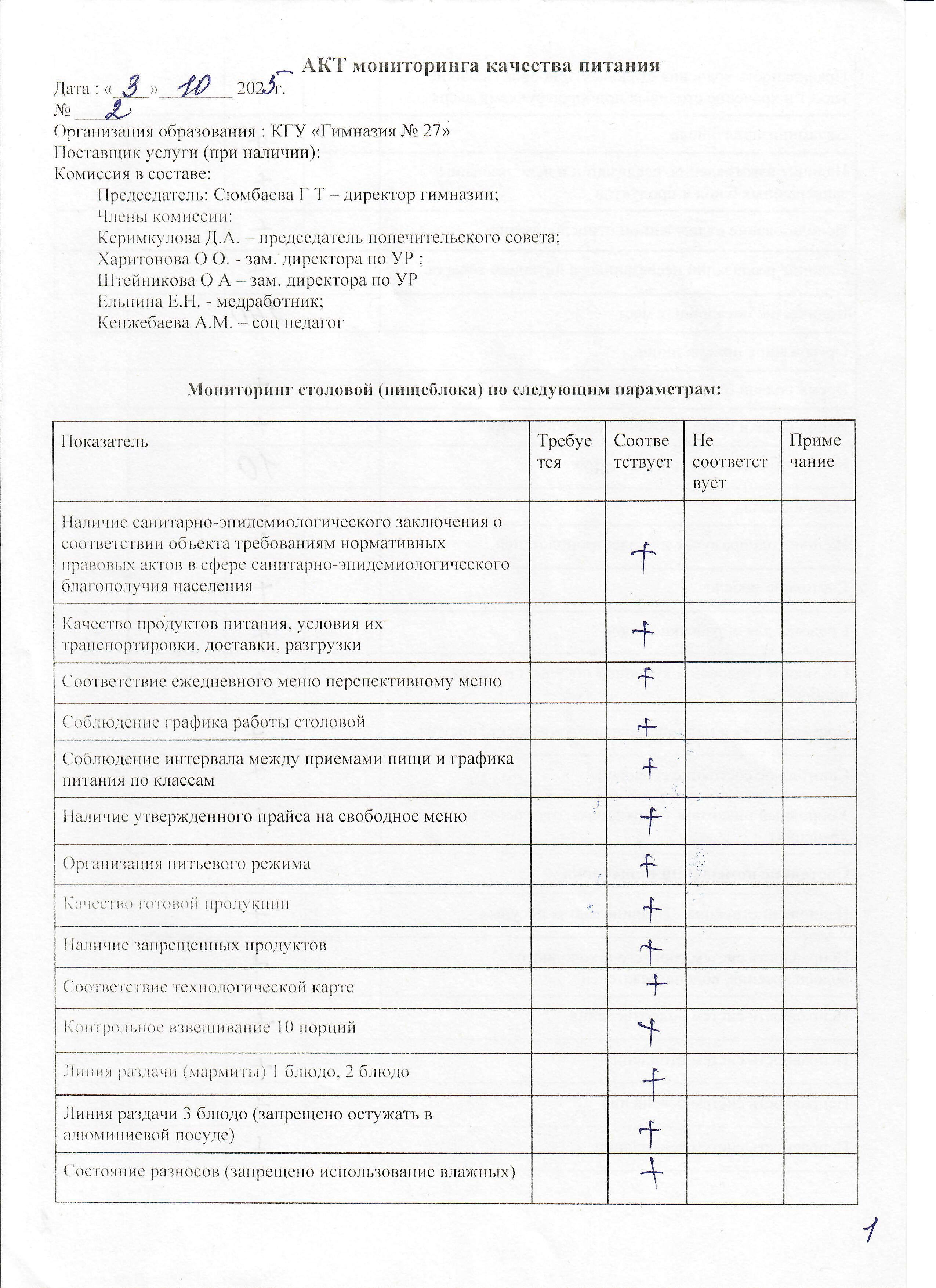 » Акт №2 мониторинга качества питания